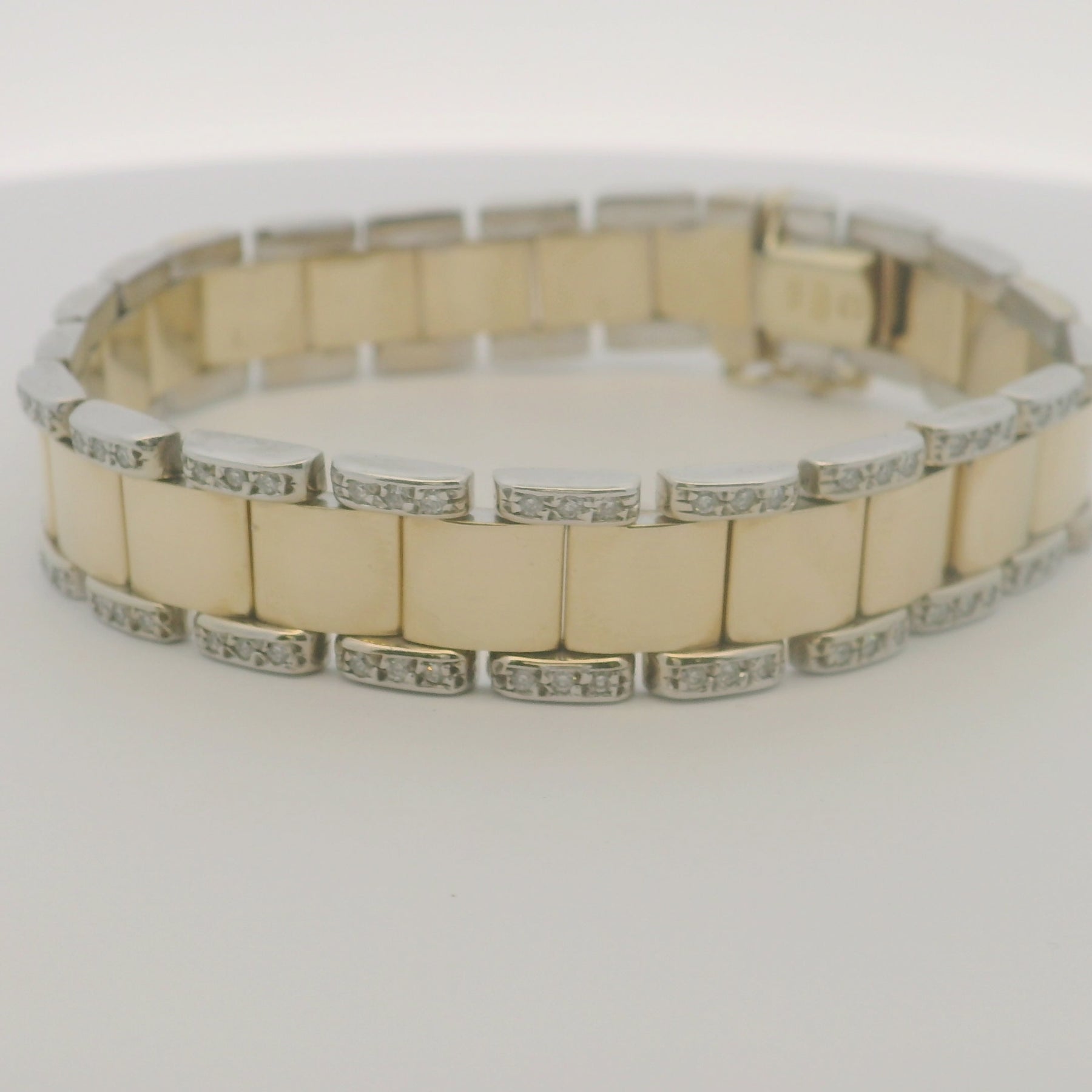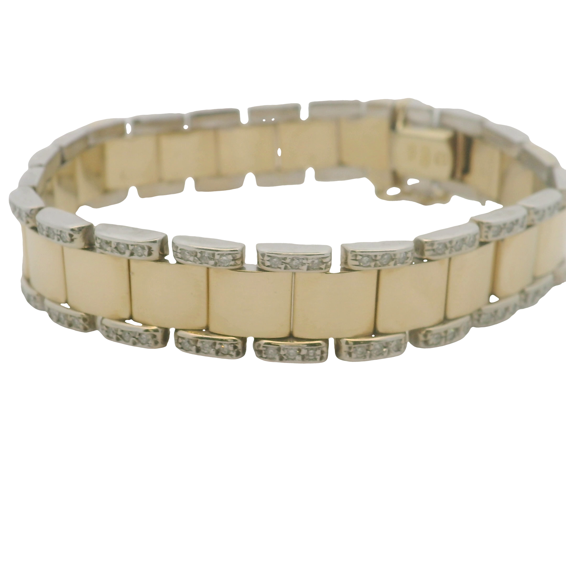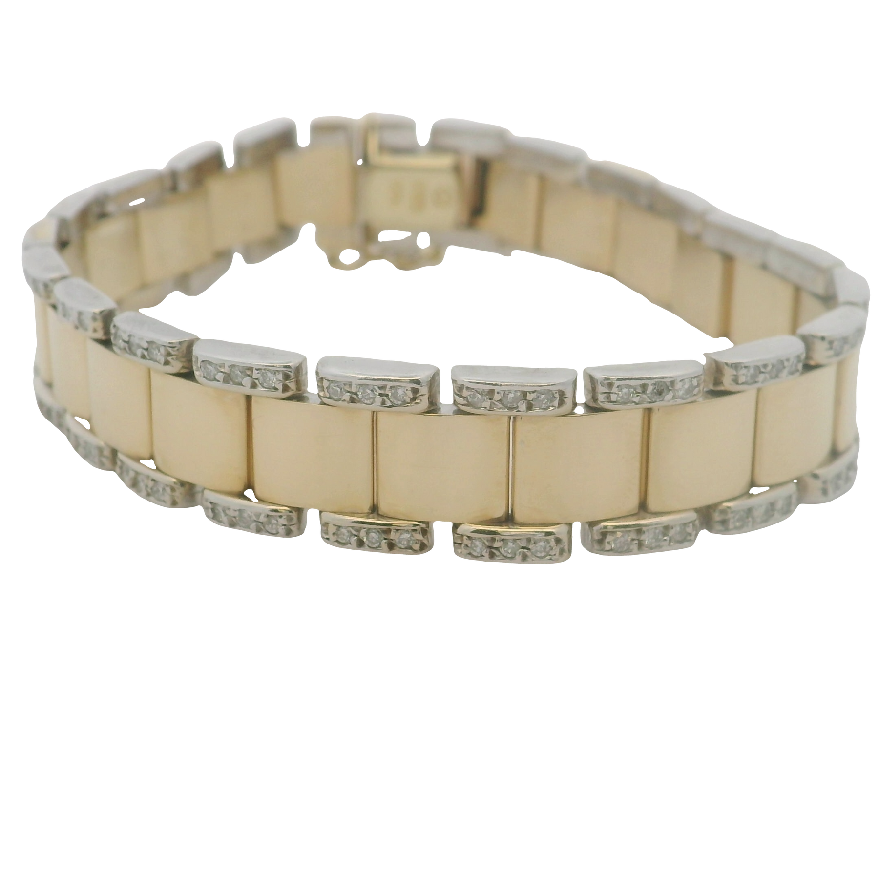 14KTT 12mm Wide Link Bracelet, 7" Length - With 130 = 1.30Tw Round H/I Si1-Si2 Diamonds - Estate
