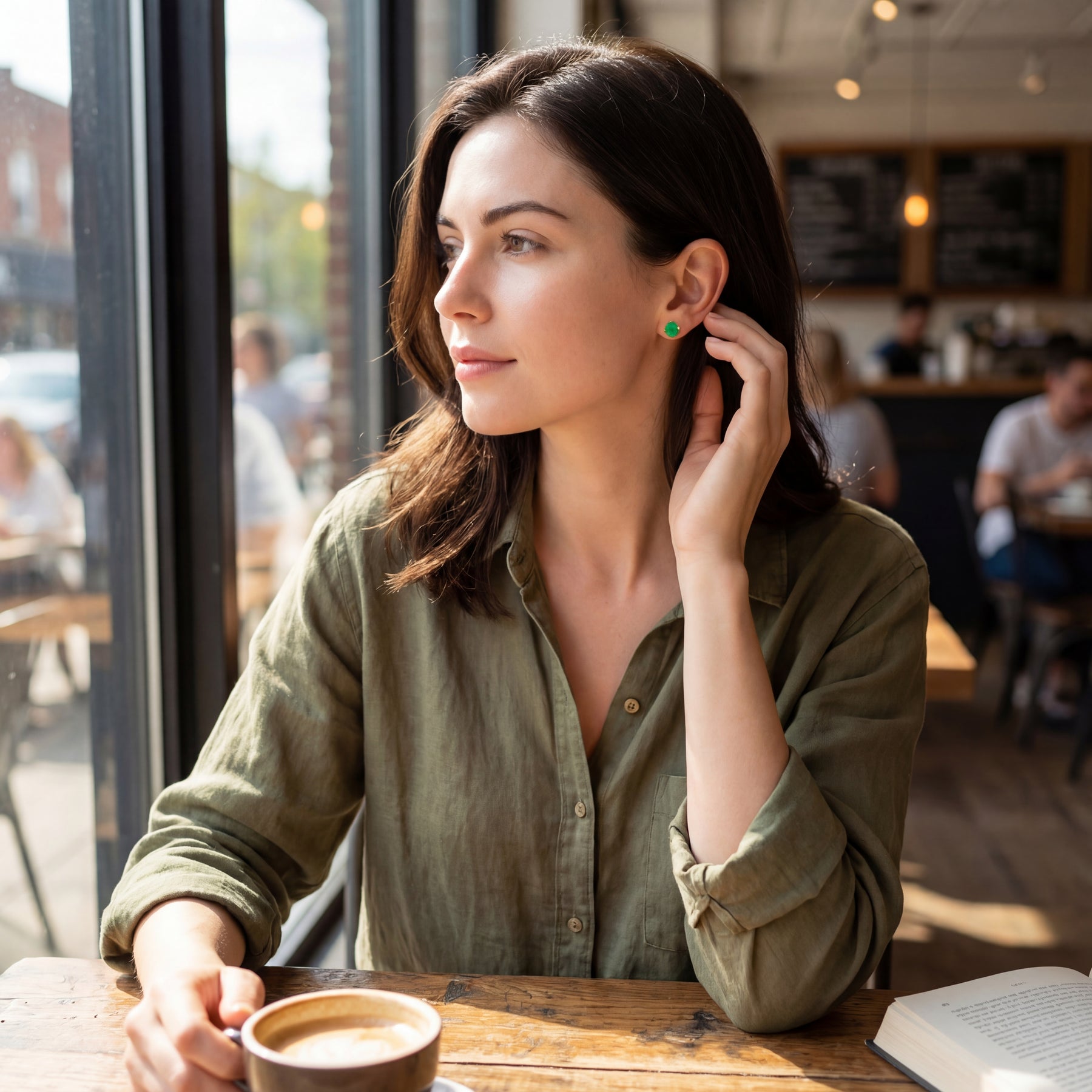 14K Y/G Stud Earrings 5MM Round Emeralds