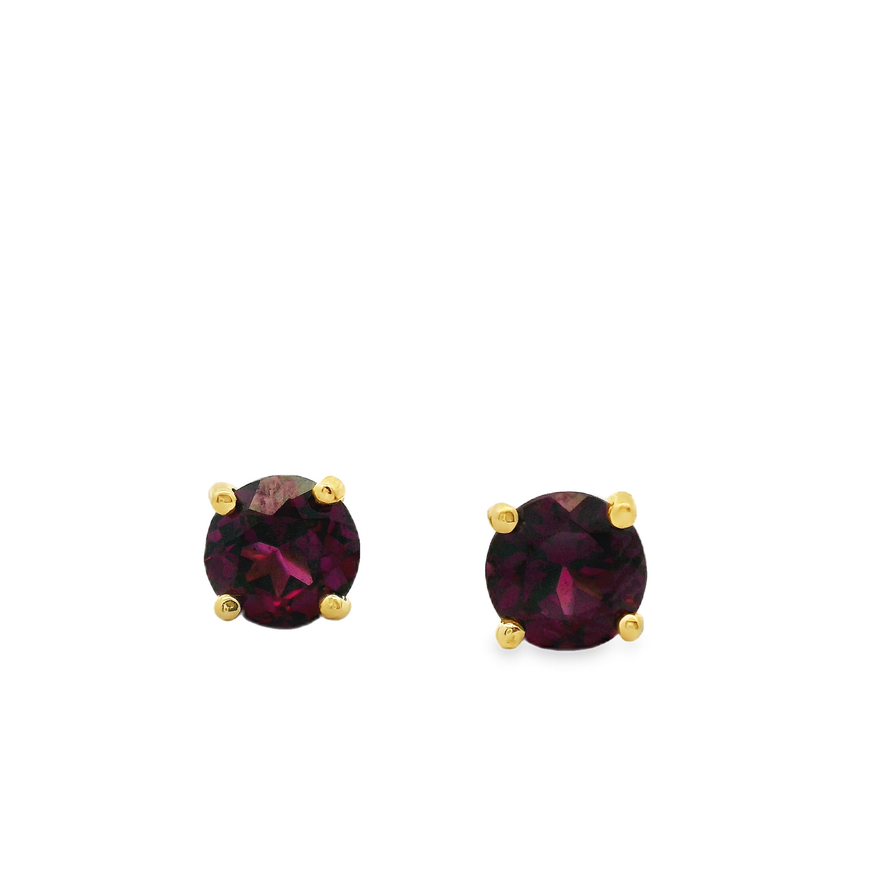14K Y/G Stud Earrings 5MM Rhodolite Garnets -Estate