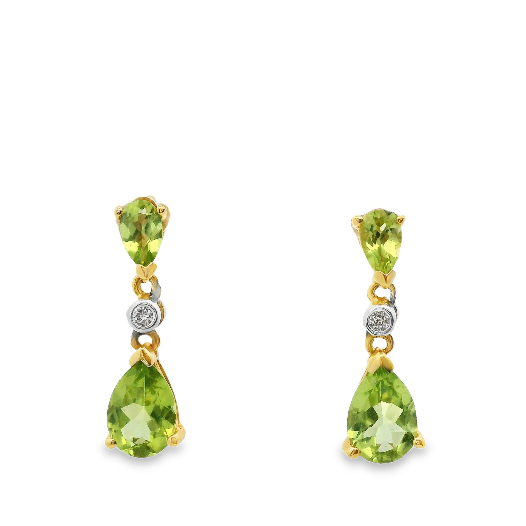 10K Y/G Dangle Earrings Pear Shape Peridots 2RDDiaAccents -Estate