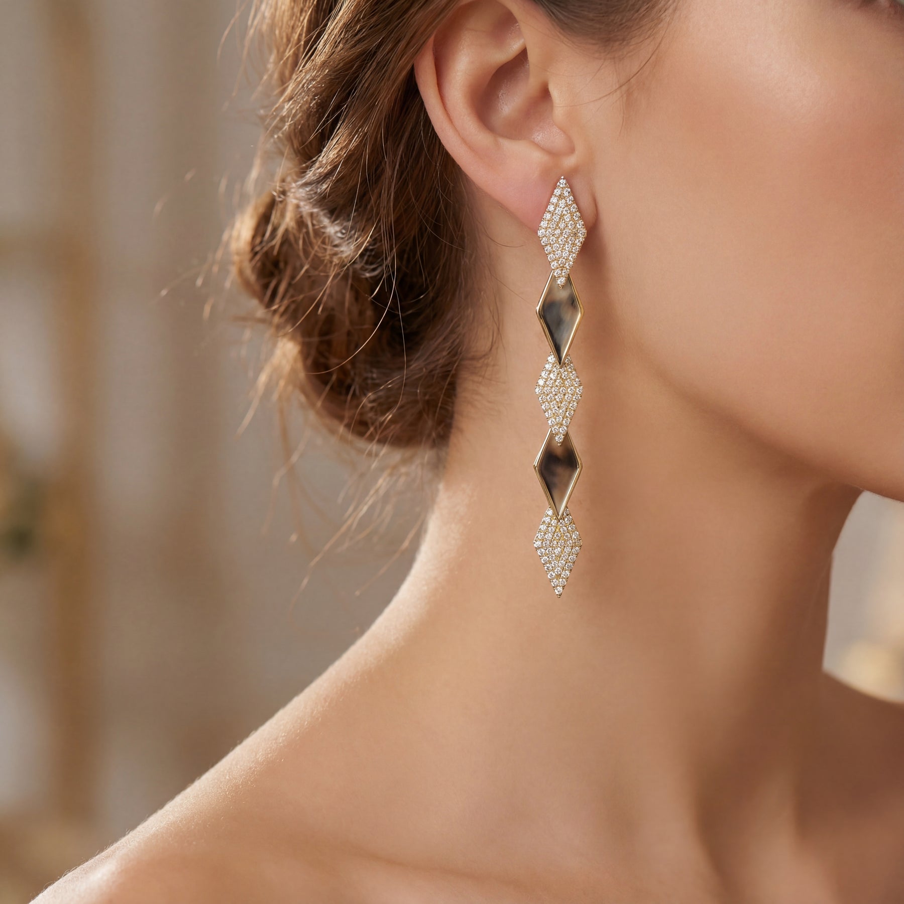 14KY Pave Diamond Dangle Earrings - With 248 = 0.75Tw Round J Si2 Diamonds - Estate