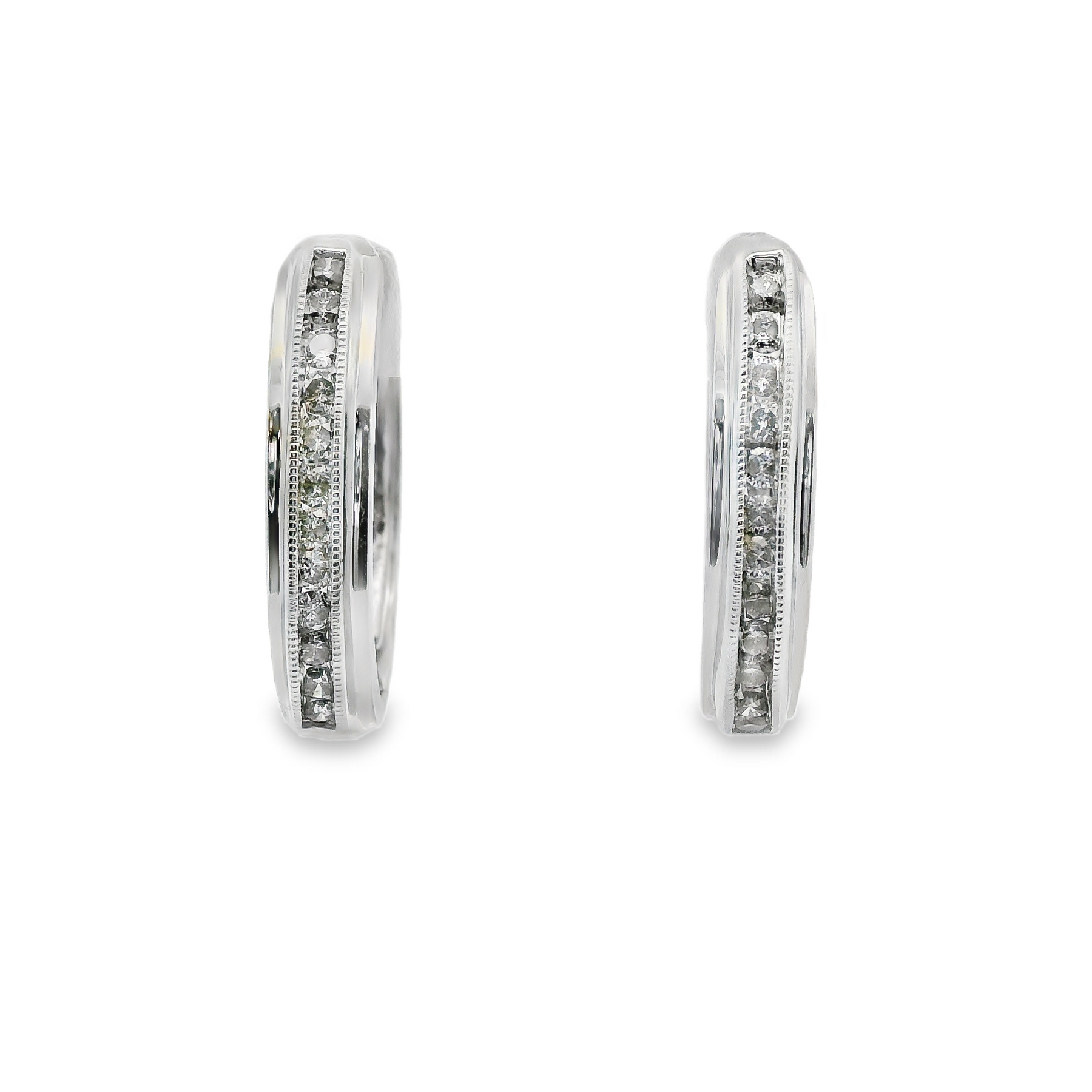 14KW Milgrain Channel Hoop Earrings - 24 = 0.48Tw Round J I1-I2 Diamonds - Estate
