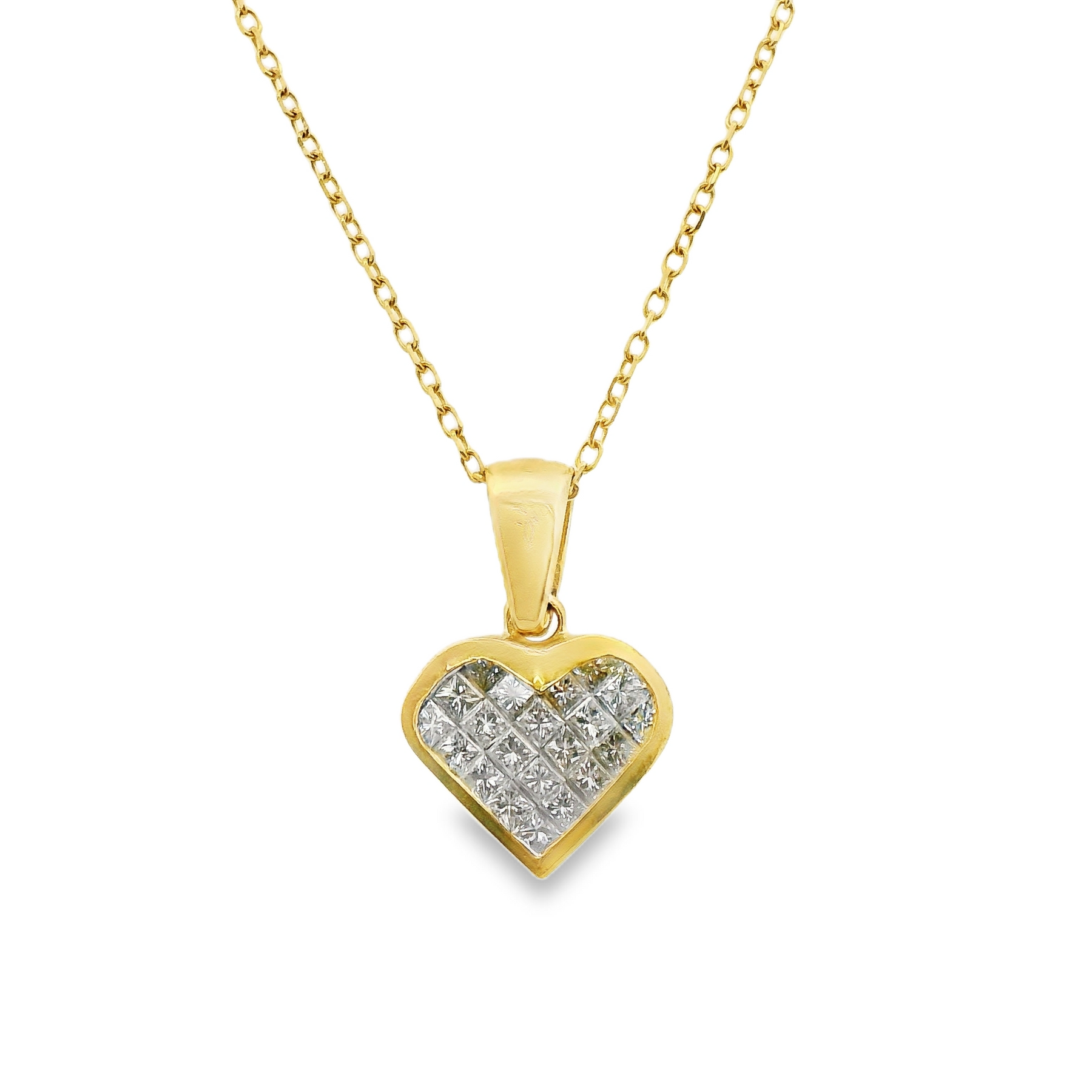 18K Y/G Heart Pendant Invisible Set 21PCDia=1.00APTW H-I VS2-SI1- Estate
