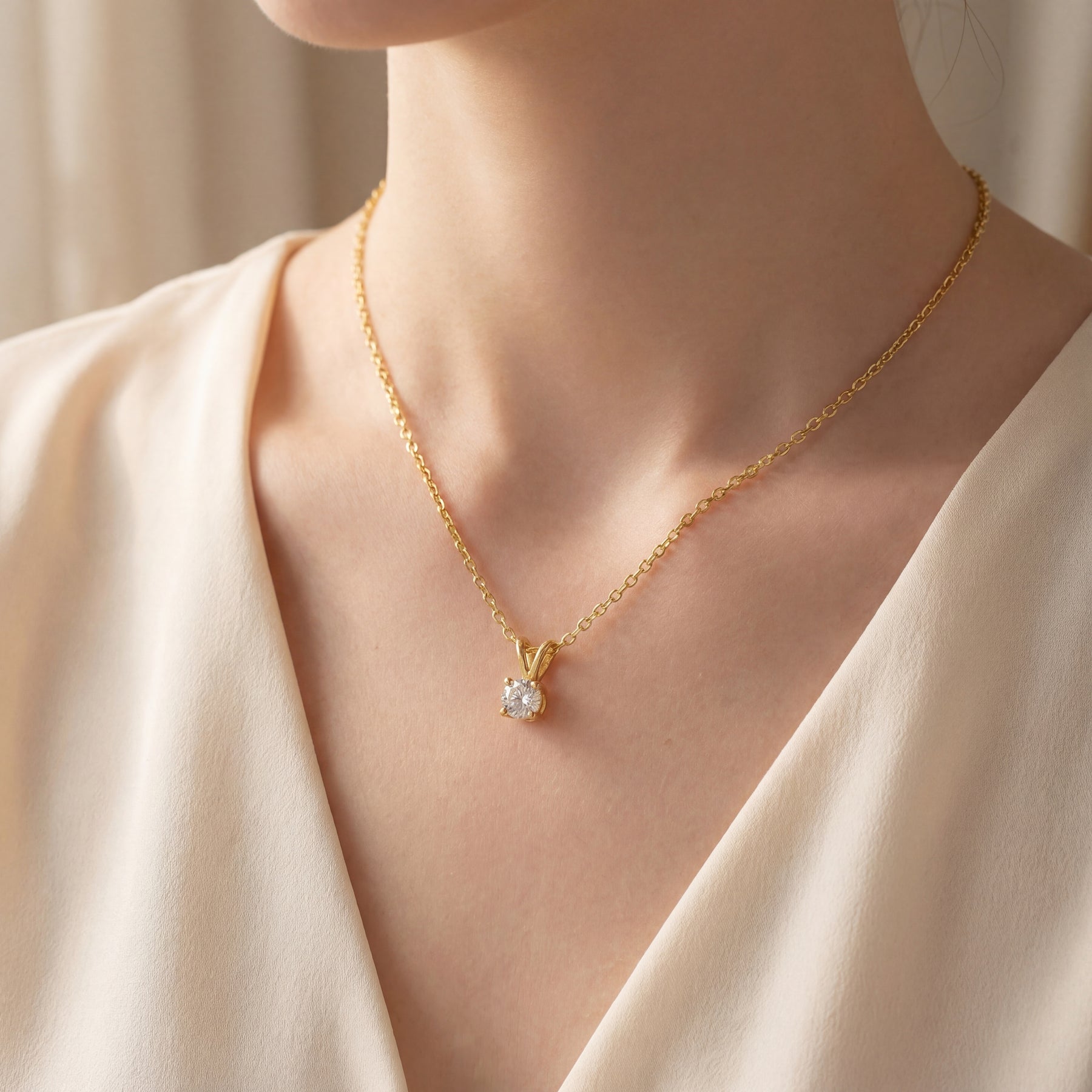 14KY Solitaire Pendant With 1RoundDia=.20APTW J I2 -ESTATE