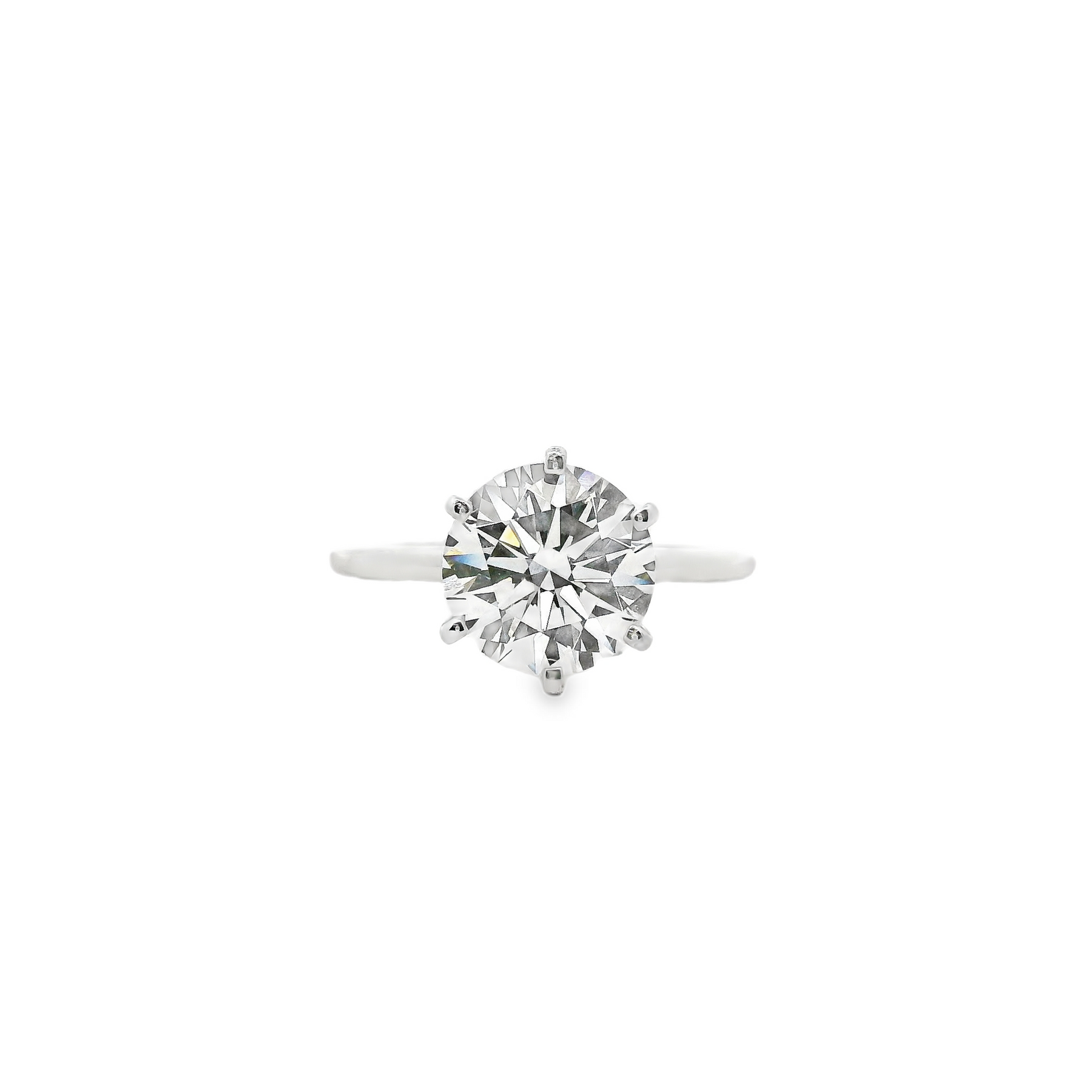 18KW Solitaire Ring - 2.50Ct Round F Vs1 Lab Grown Diamond - IGI LG418025492 - Estate - Size 5.5
