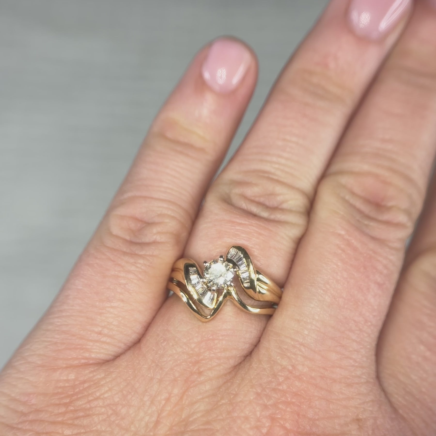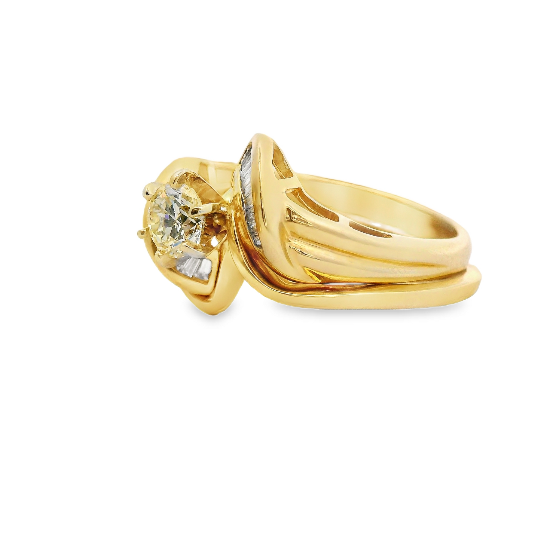 14K Yellow Gold Wed Set 1Rounddia=.40Aptw K Vs2 18Bagdia=.25Aptw -Estate Size 6.5