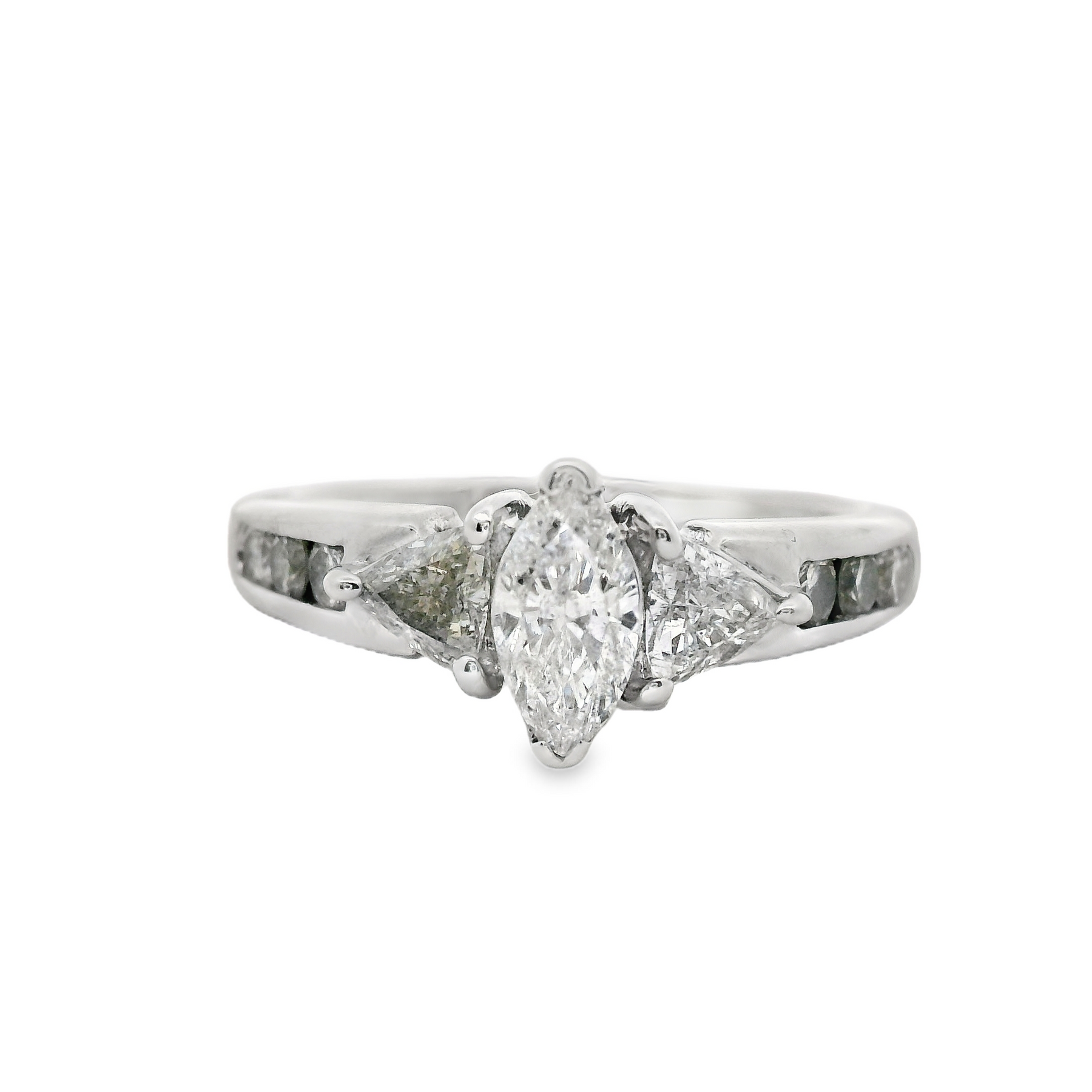 3 Stone Ring 14W - 0.40Ct Marquise I I1, 2=0.30Tw Trillian I Si2, 6=0.25Tw Rd Diamonds - Estate Size 7.25