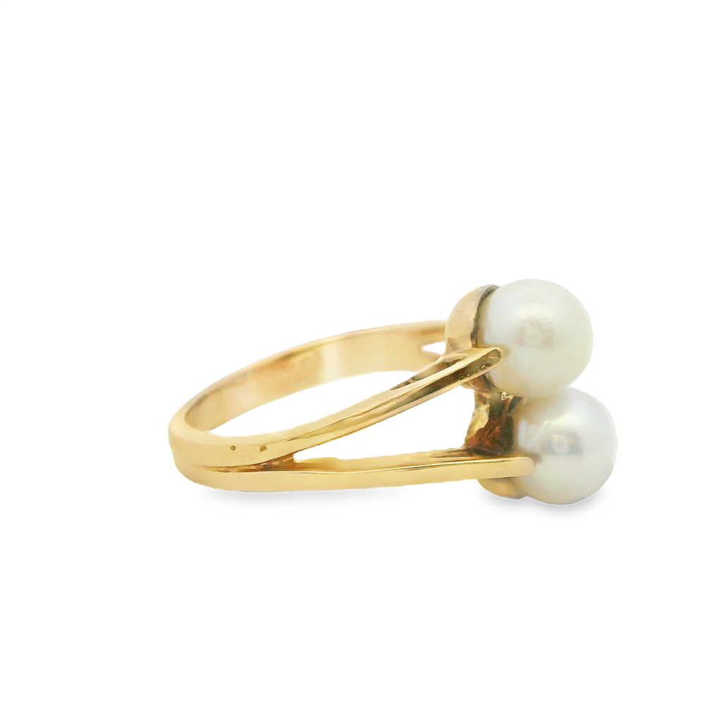10K Yellow Gold Split Shank Ring With 2-6Mm Freshwater Cult. Pearls -Estate Size 5
