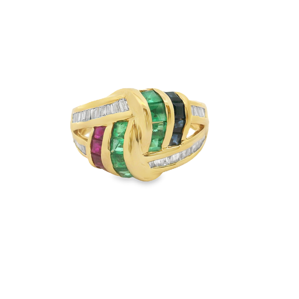 18K Y/G Ring Emerald/Rubies/Sapphire 42Bagdia=.75tw H-I Vs2-Si1-Estate Size 7
