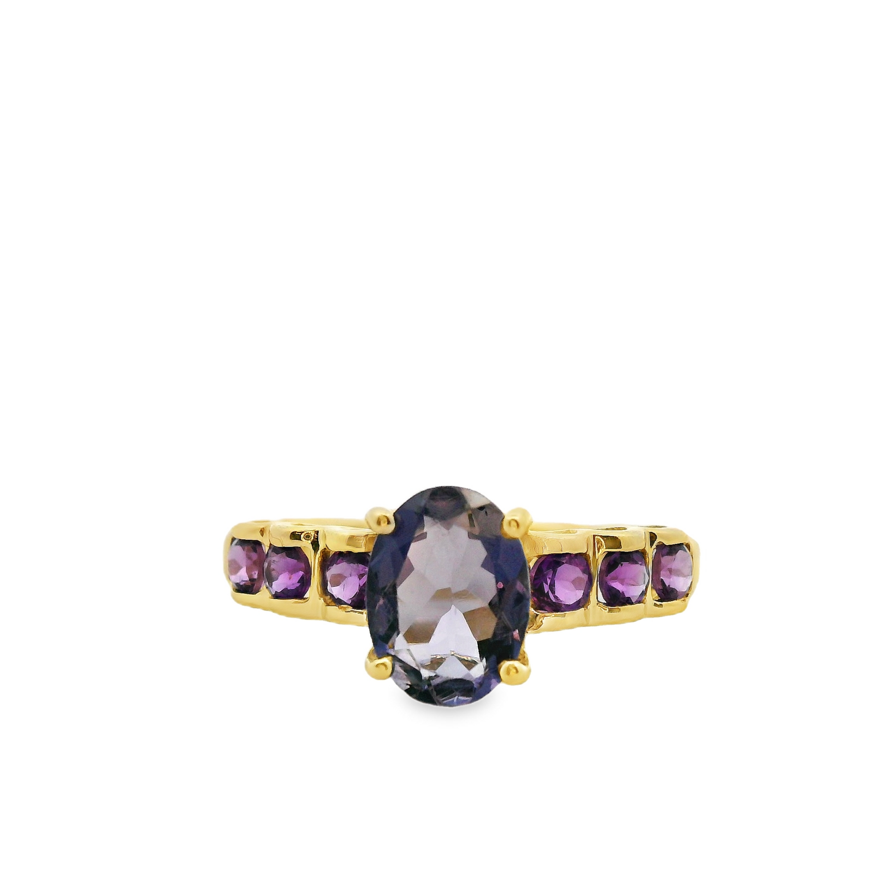 10K Y/G Ring 8X6 Oval Iolite Round Amethyst Sides -Estate Size 7