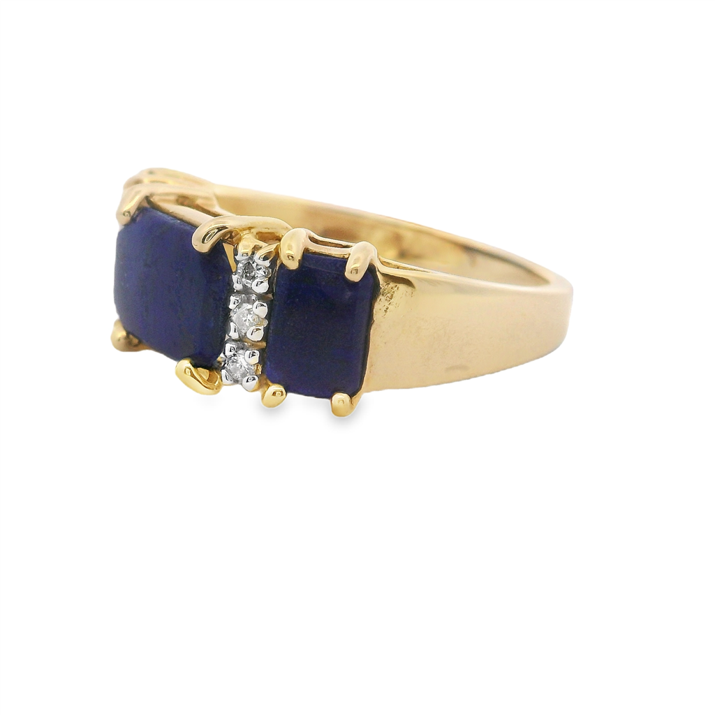 14K Y/G Ring 3 Stone Blue Lapis 6RDDia=.10APTW I-J I1 -Estate