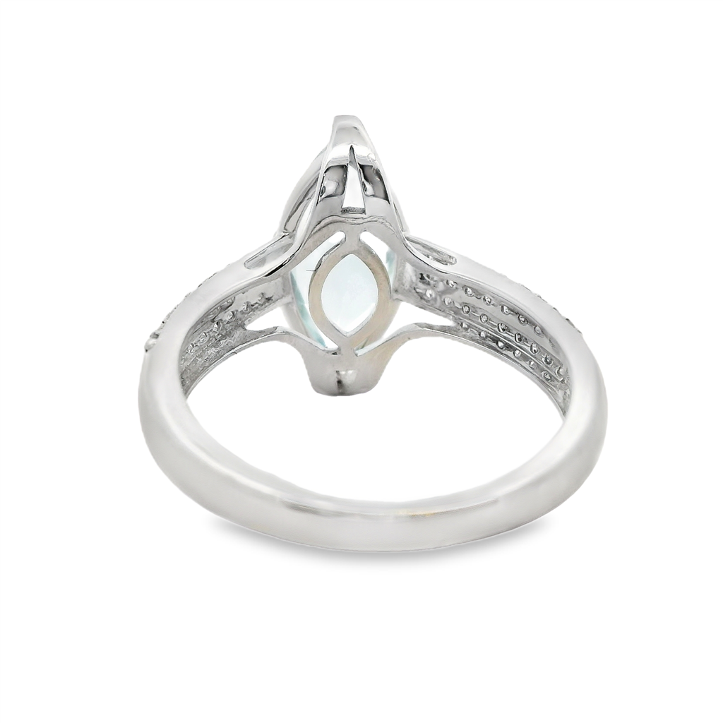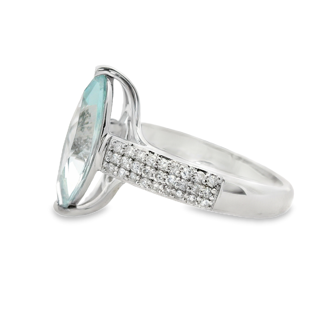 14KW Cathedral Ring - 1.84Ct Marquise Aquamarine & 54 = 0.25Tw Round H/I Si2-I1 Diamonds - Size 7