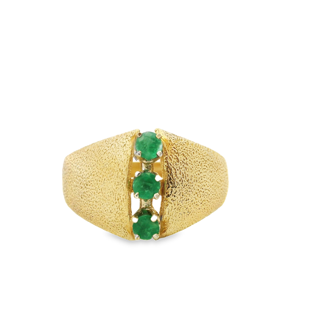 Ring 14Kt - Size 6.5 3 = 2.50x2.50mm Round Green Emeralds