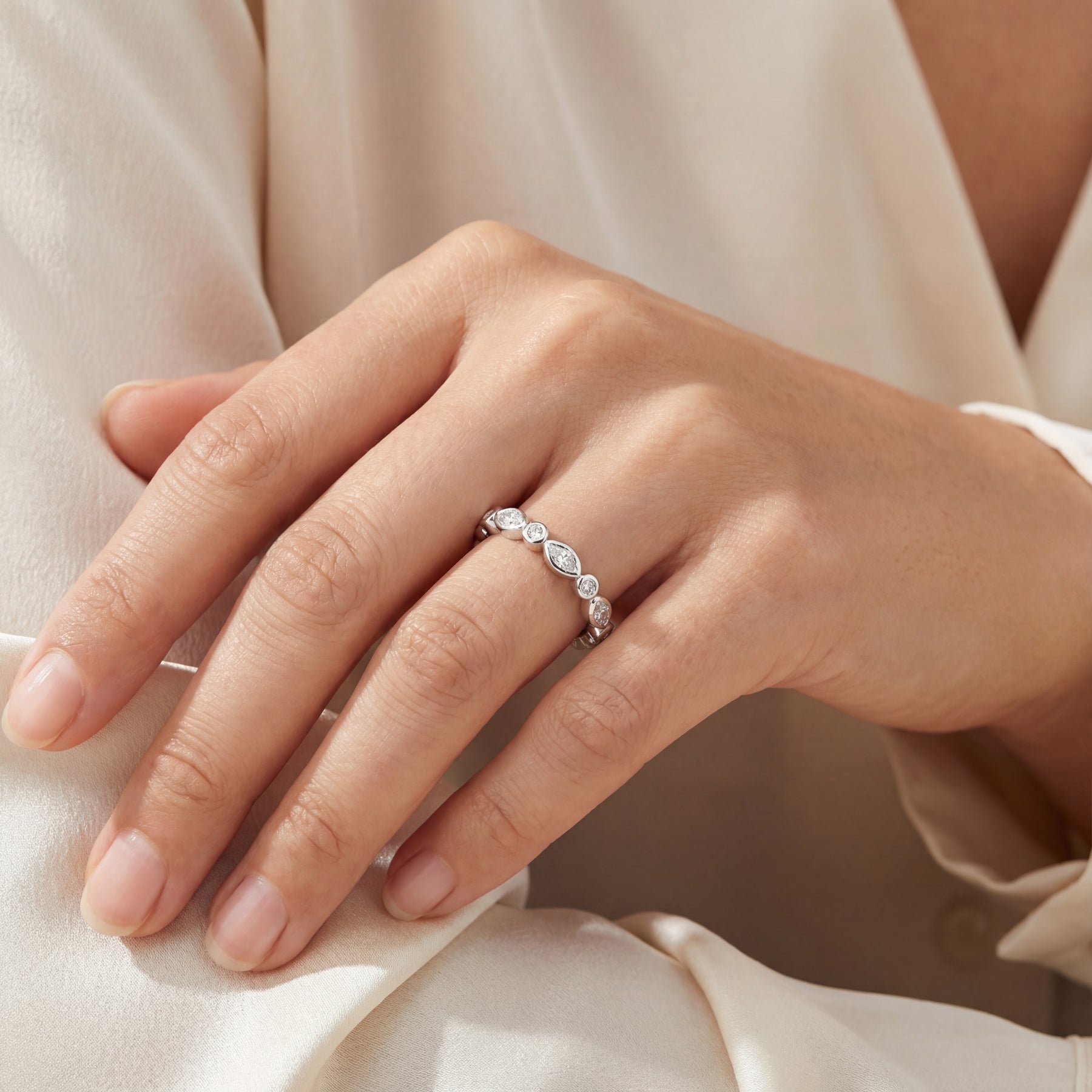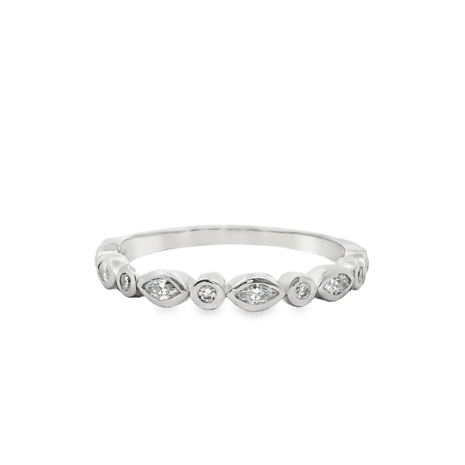14K W/G Band 5 Round+5 Marquise=.23 H-I Si1-I1 Bezel Set -Estate Size 7