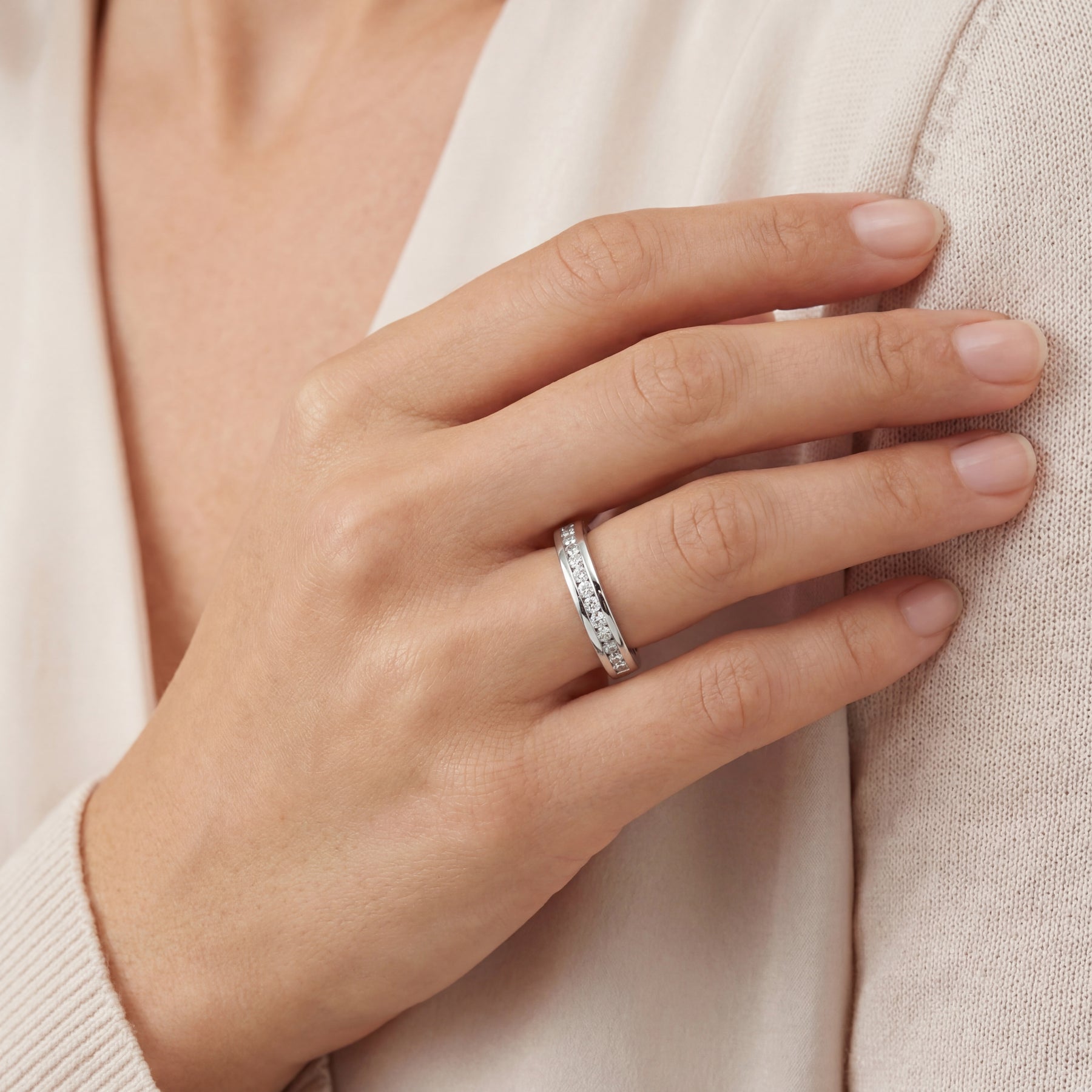 14K W/G Band 15 Round diamond=.25 I-J Si1-Si2 Channel Set-Estate Size 6.75