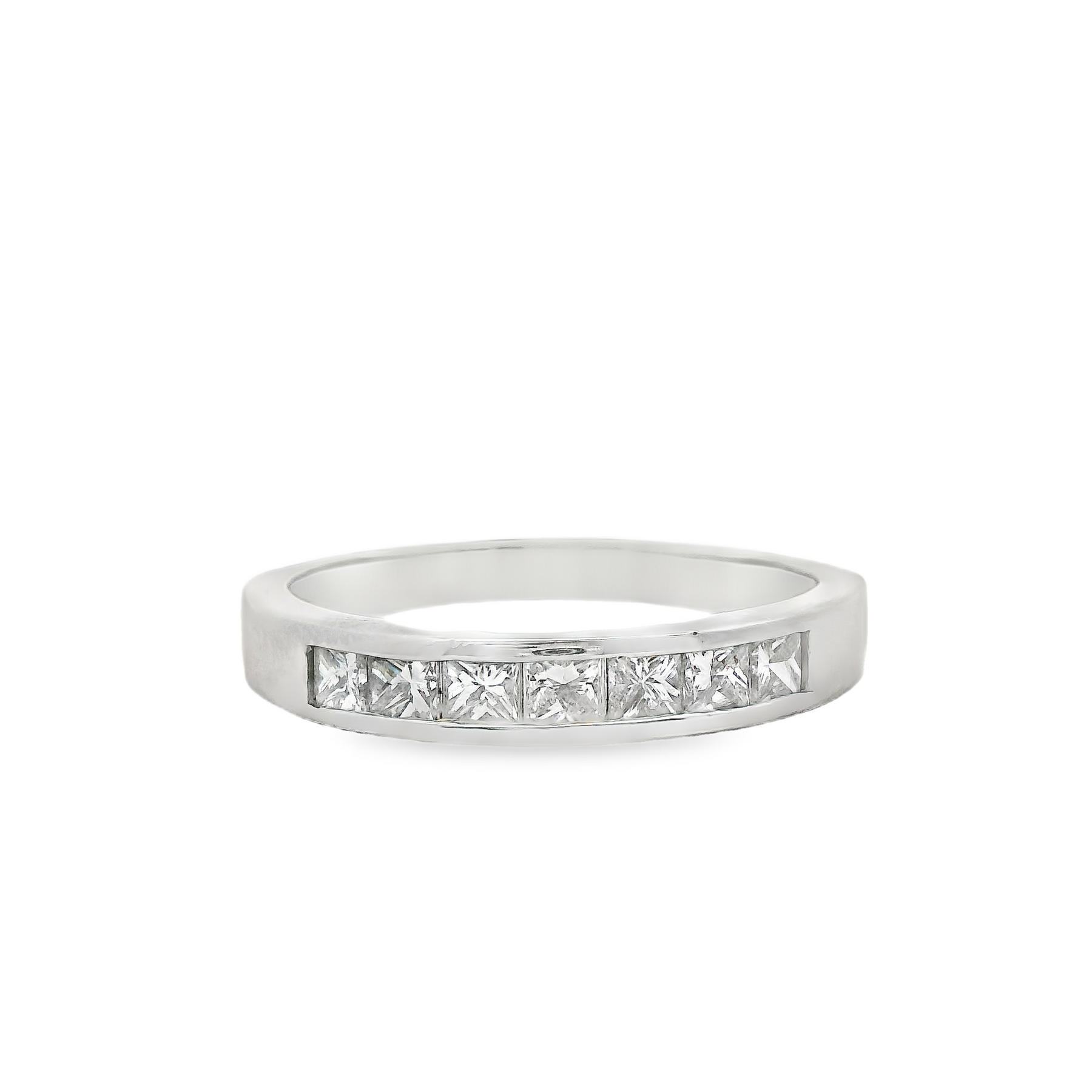 14K White Gold Channel Band - Size 9.5 7=0.70Tw Princess Cut Diamonds