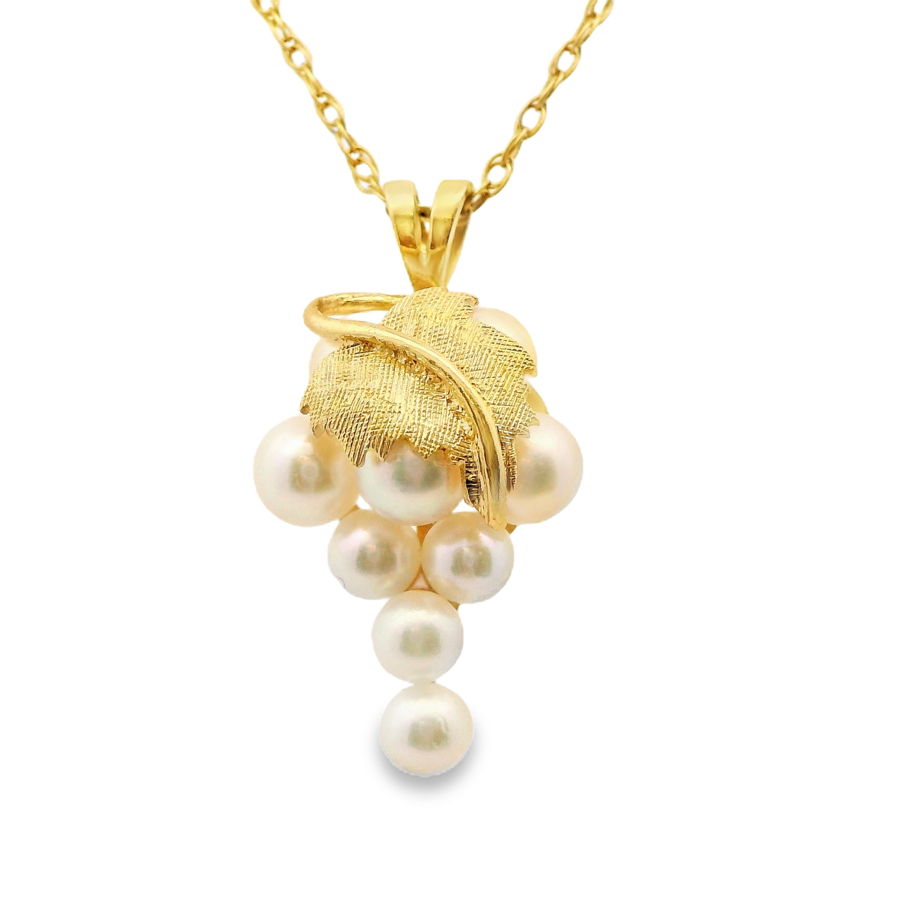 14KY 'Bunch of Grapes' Pearl Pendant & 19" Chain - With 9 = Round Pearls - Estate