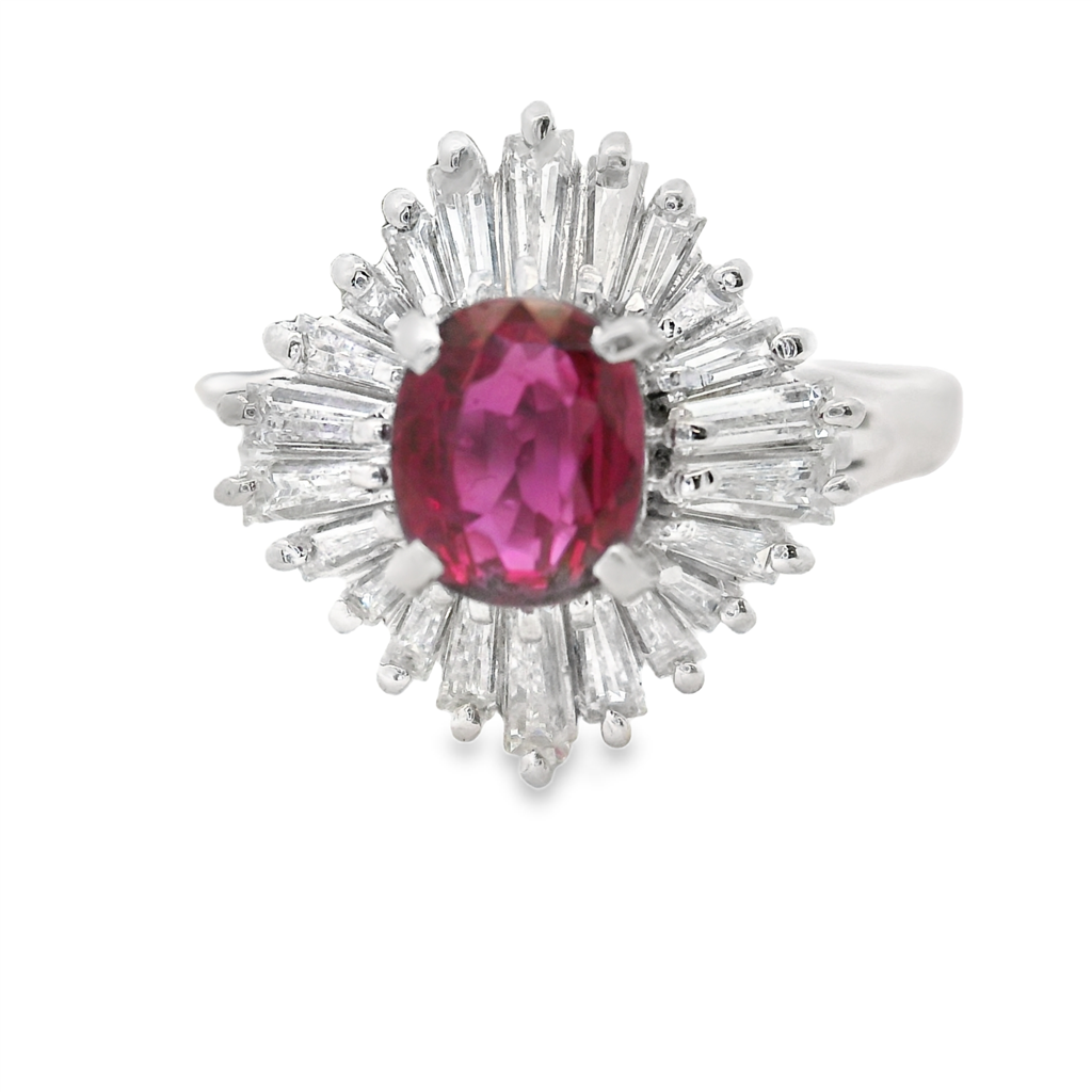 PLATINUM GIA .96ct OVAL RUBY/BAG DIA RING 22D=0.76ctw - CLOSEOUT Size 8