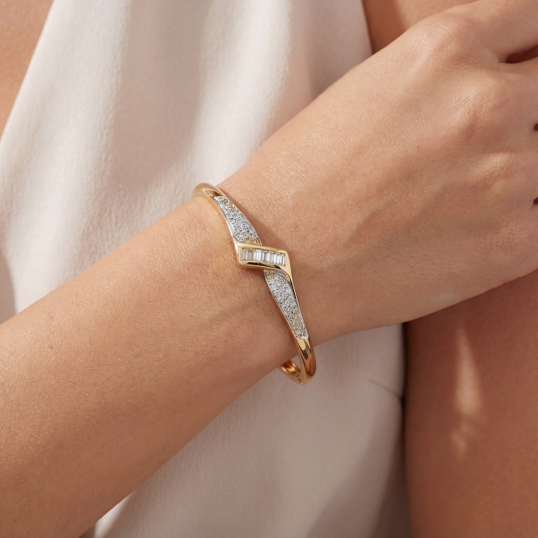 14K Y/G Bangle 60Round Pave Set +6BagDia=.50APTW I-J SI1-I1 -Estate