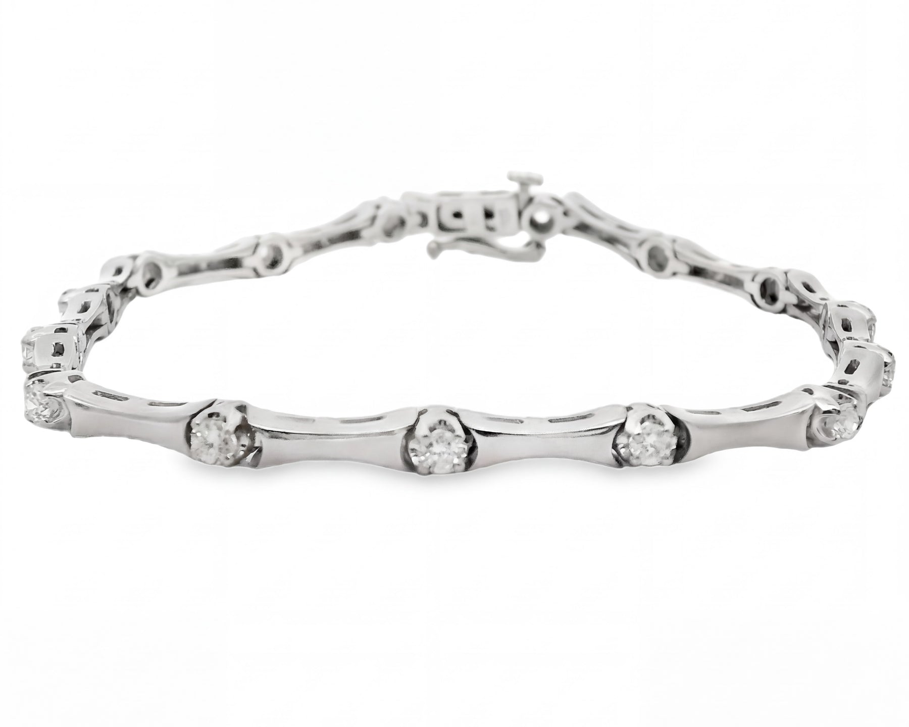 14K W/G Bracelet Station 15 Round Diamonds=.75TW I-J I1 -Estate 7.25 Inches