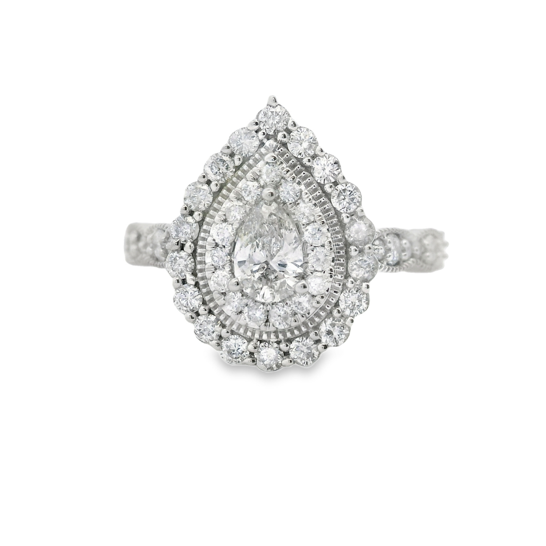 14K W/G Double Halo Ring Pear=.25 51Rddia=.70Aptw H-I Si2-I1 -Estate Size 6