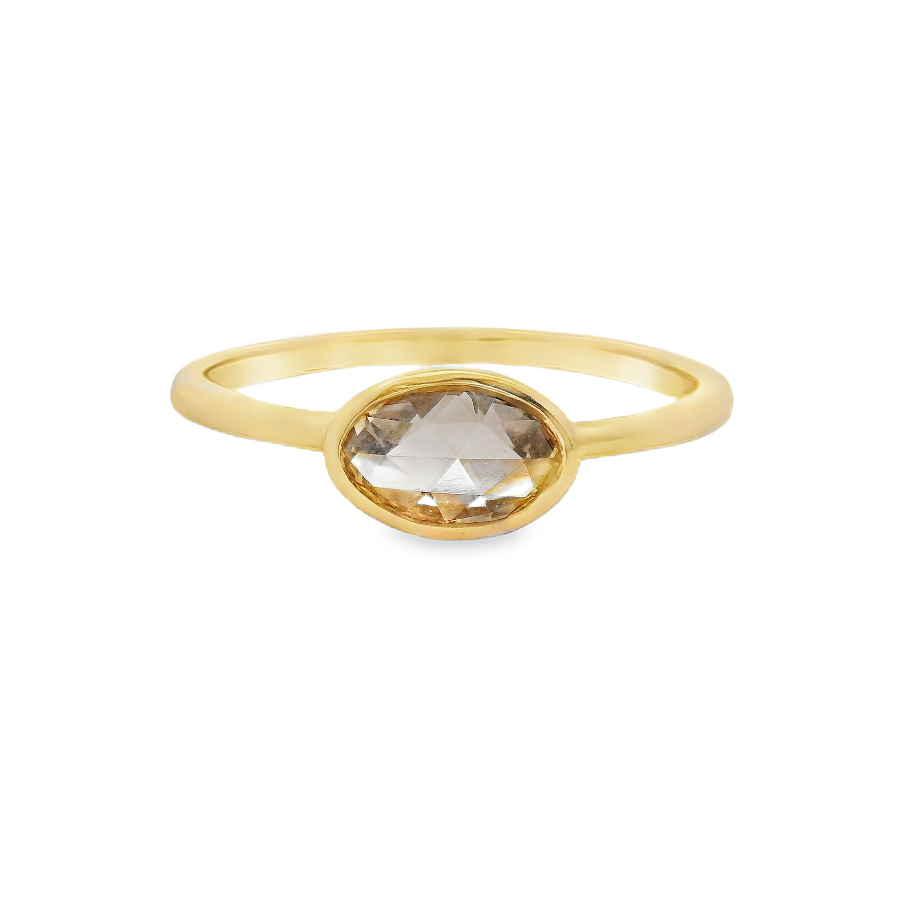 14K Yellow Gold .49Ct Rose Cut Diamond Oval Set Bezel Ring Size 6.5