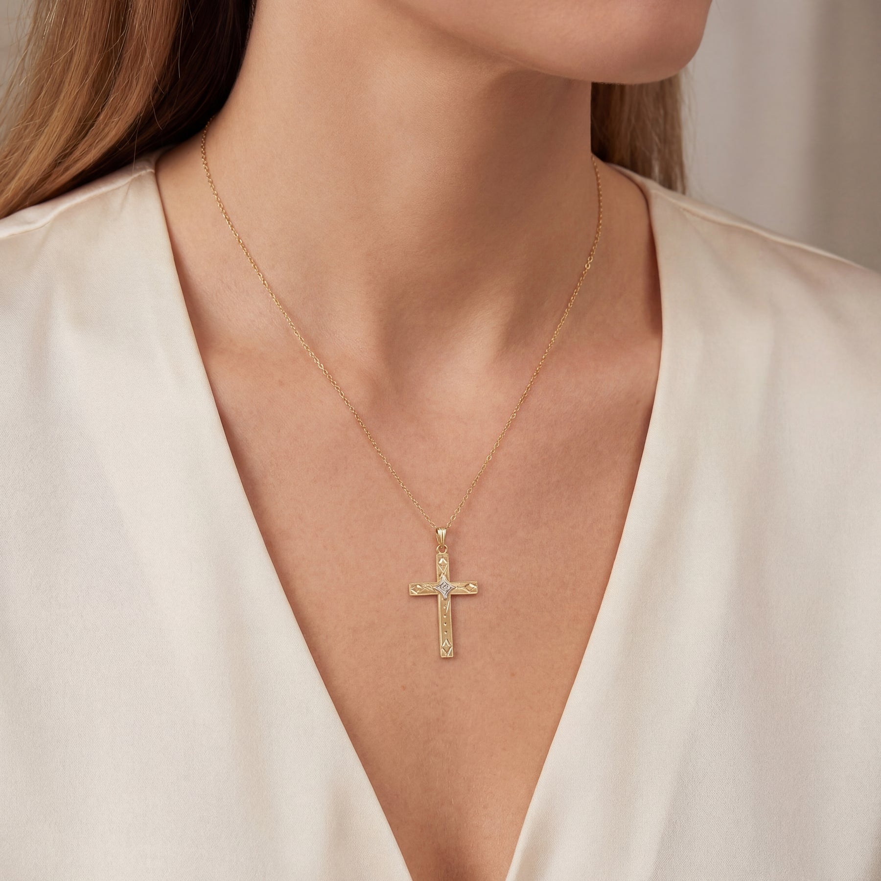10K Y/G Cross Pendant 1 Round Diamond Accent -Estate