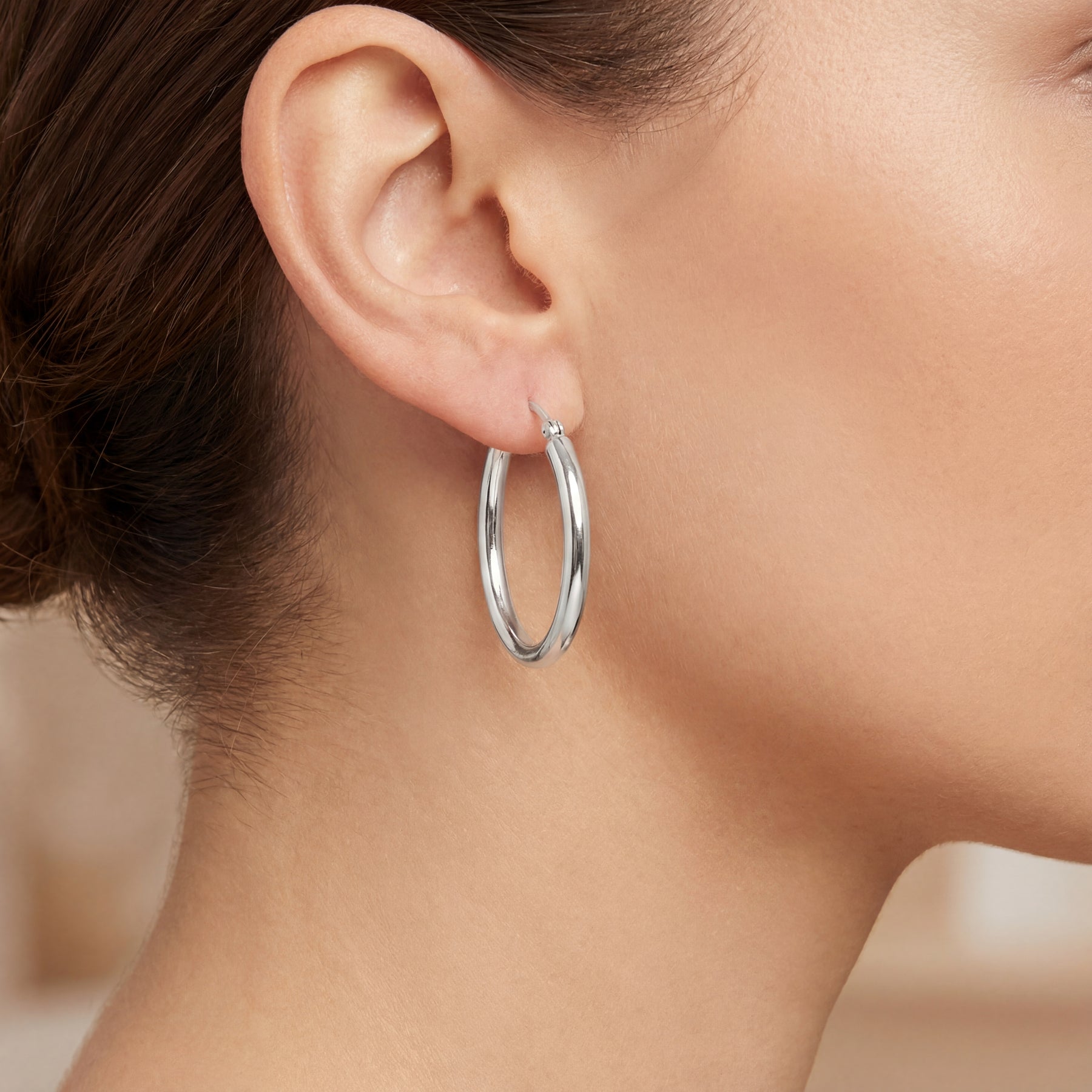 14KW 1.25" Hollow Oval Hoop Earrings - Estate