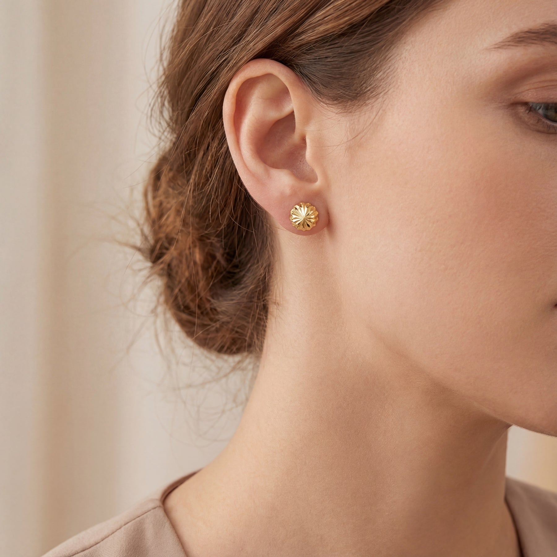 14K Y/G Diamond Cut 7MM Half Ball Stud Earrings -Estate