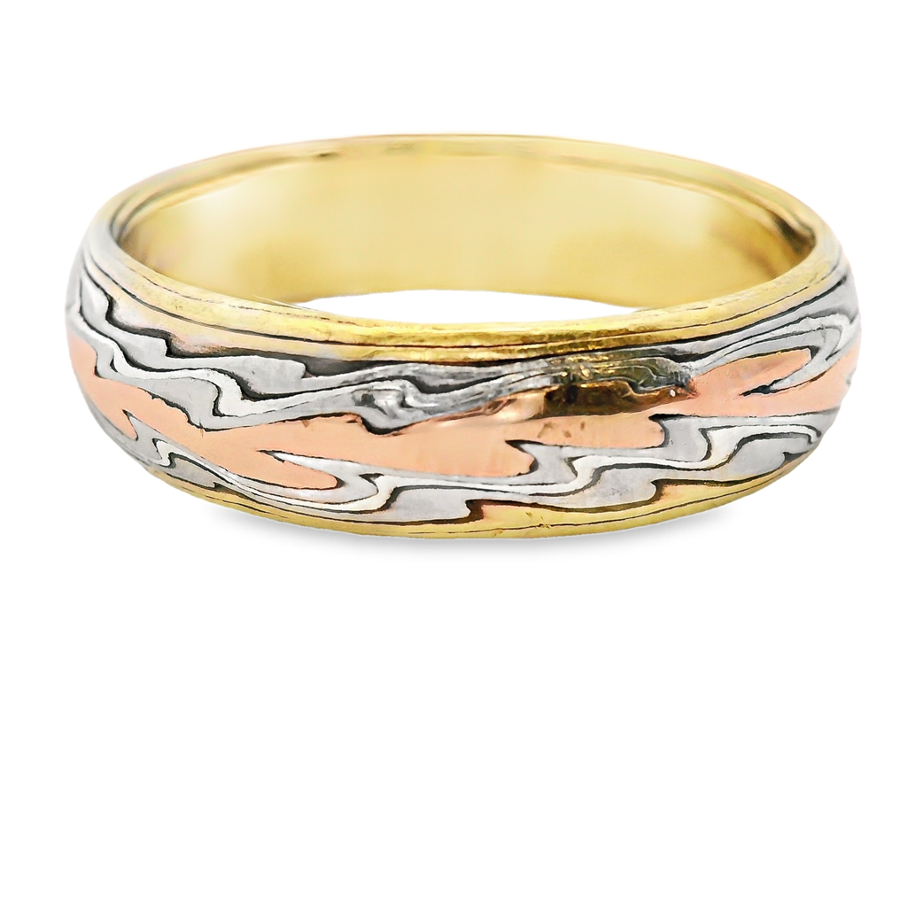 18K 3 Tone Gent's Band 6MM -Estate Size 9.5