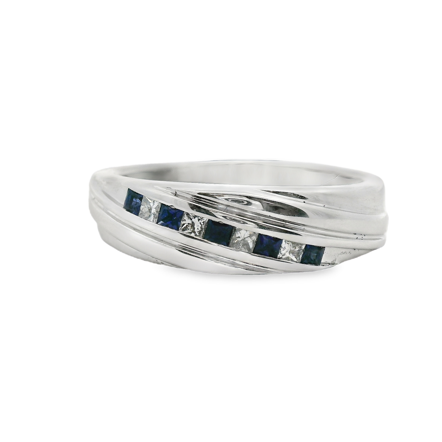 14K W/G Vera Wang Band Sqr Sapphires 4 Princess Cutdia=.20 I-J I1 -Estate Size 11