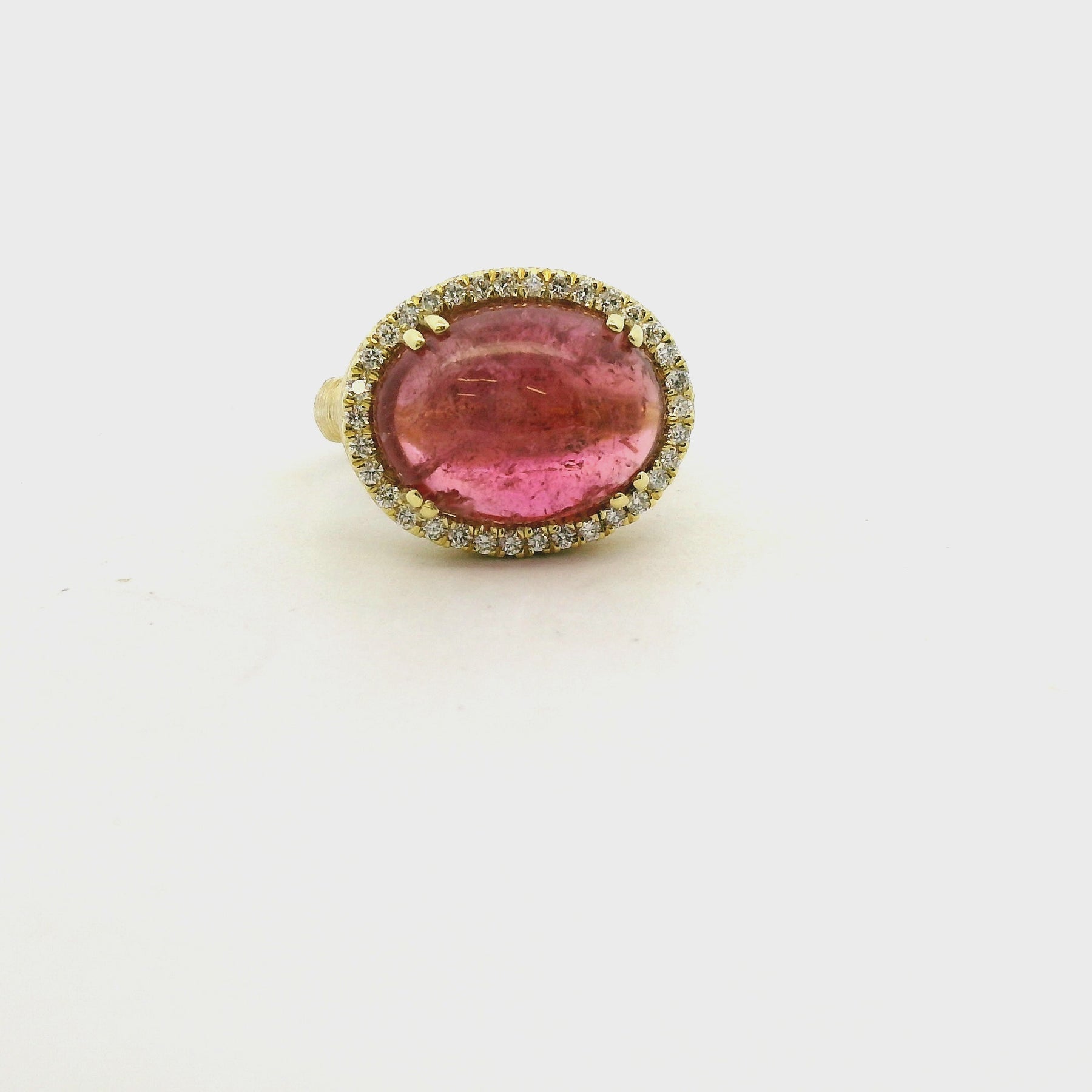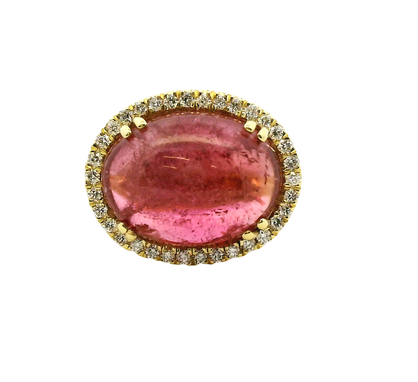 14KY 11.00ct Cabachon Pink Tourmaline & 0.34cttw Diamond Ring. Size 6.5