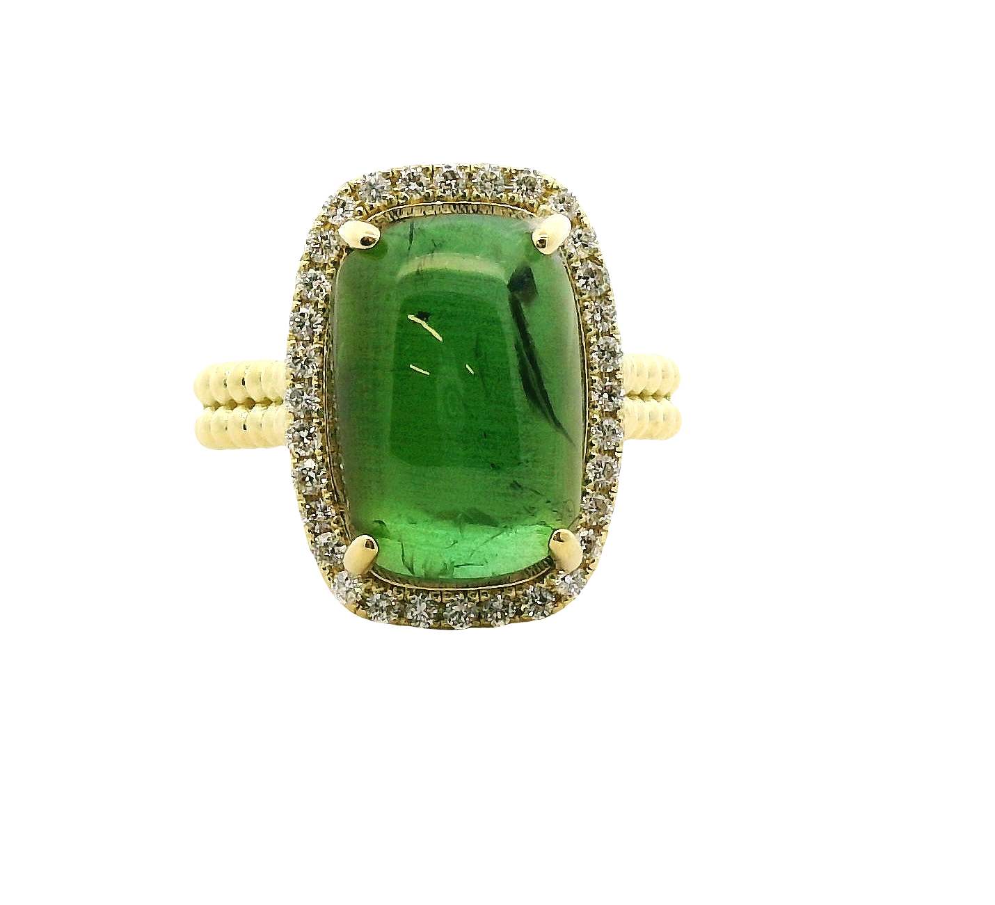 14KY 10.50ct Green Tourmaline & 0.33cttw Diamond Ring. Size 6.5