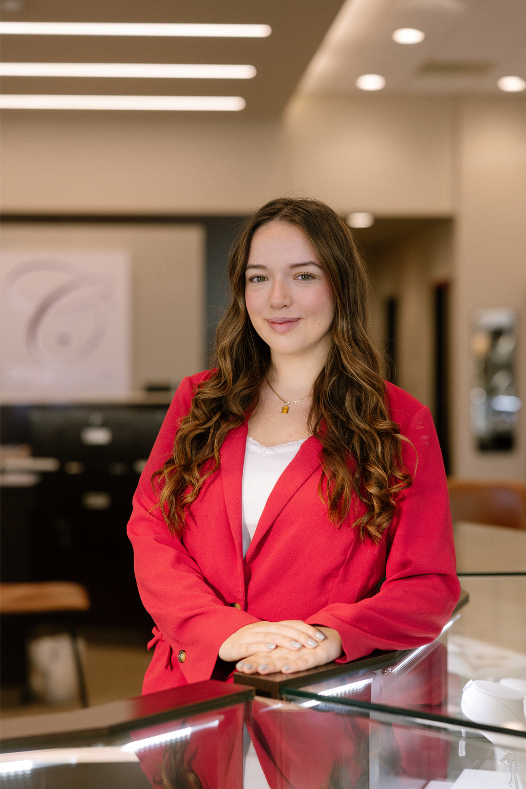 Charlotte is known for her warm and welcoming approach that makes clients feel at home. She believes jewelry should reflect individuality and connection. In her free time, she enjoys gardening, concerts, and spending time with friends.