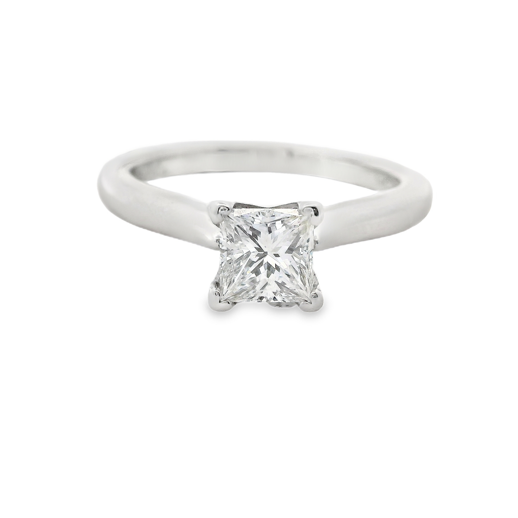 Solitaire Eng Ring 14W - Size 6.75 With One 0.71Ct Princess F Vvs2 Diamond