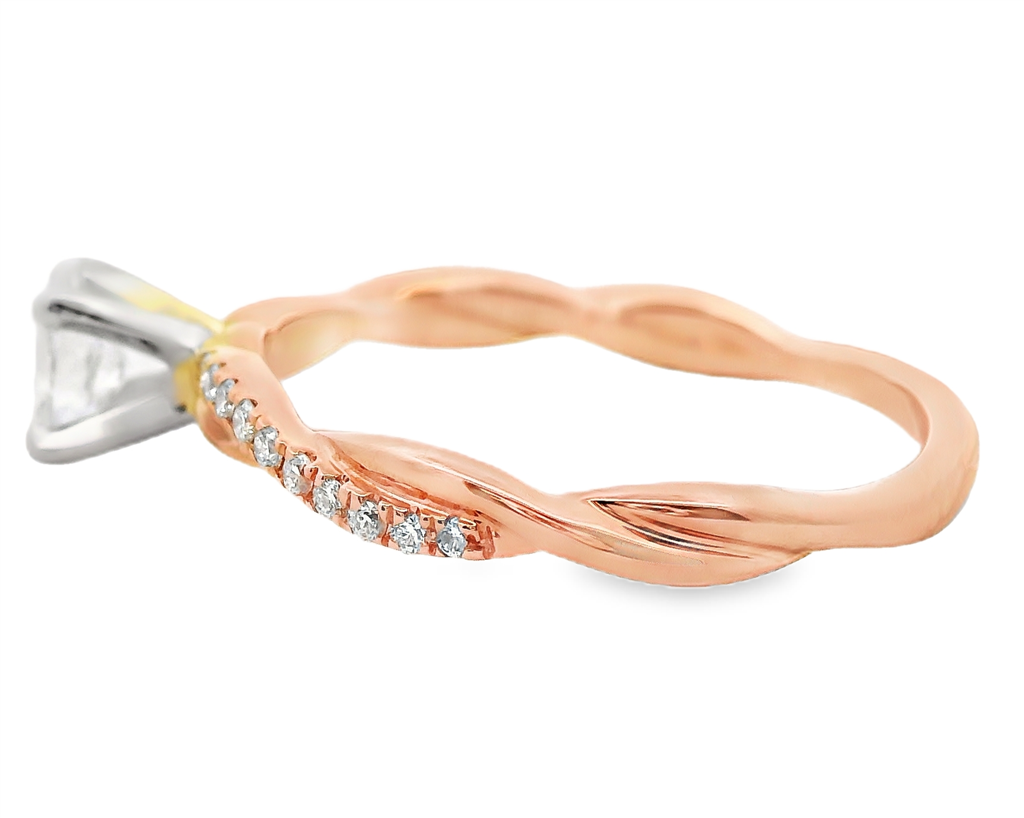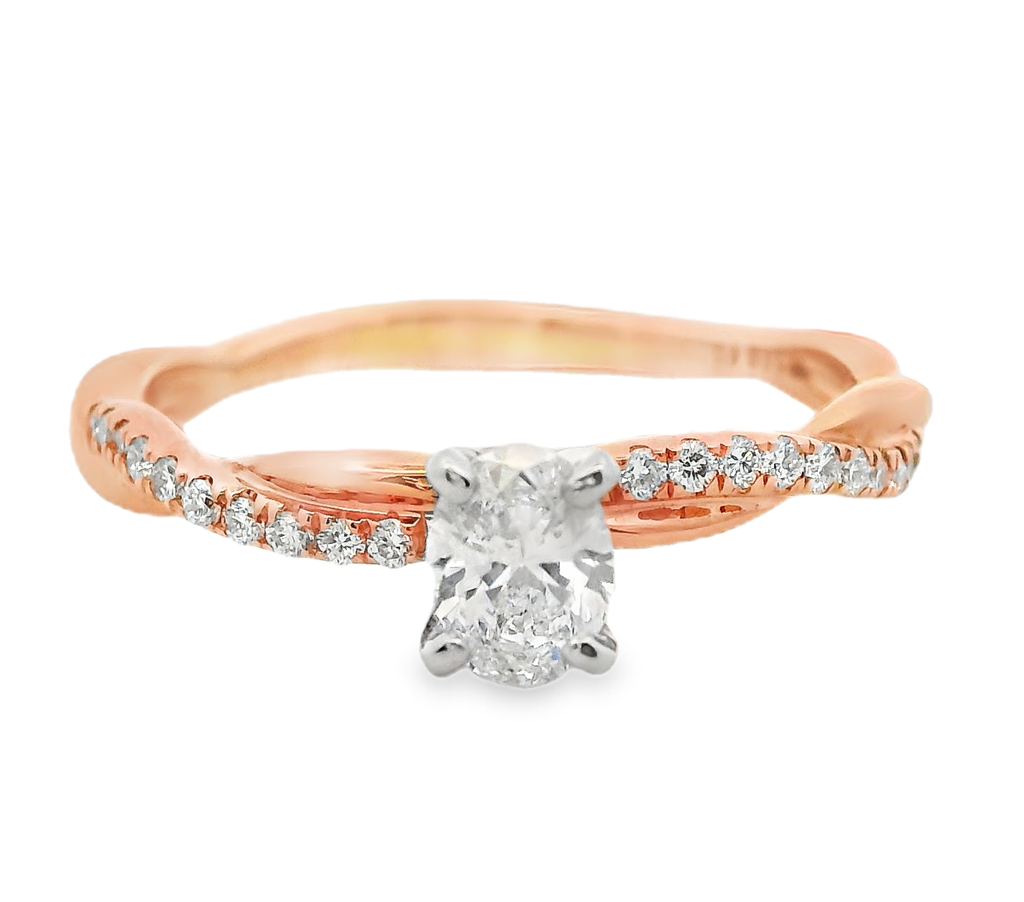 14K R/G Engagement Ring Oval Dia=.25 I Si1 20Rounddia=.15 H-I Si1-Si2 -Estate Size 7