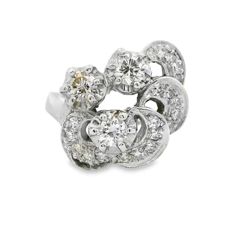 14Kw Vintage Swirl Cluster Ring 23Rounddia=1.00Aptw H-J Si1-Si2-Estate Size 4.75