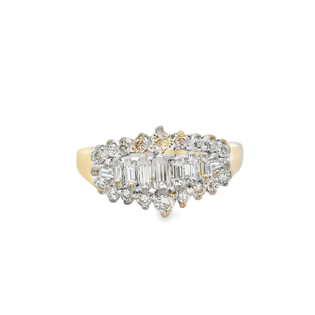 14K Y/G Ring 18Round + 9Baguette Dia=.40APTW H-I SI1-SI2 -Estate size 6.25